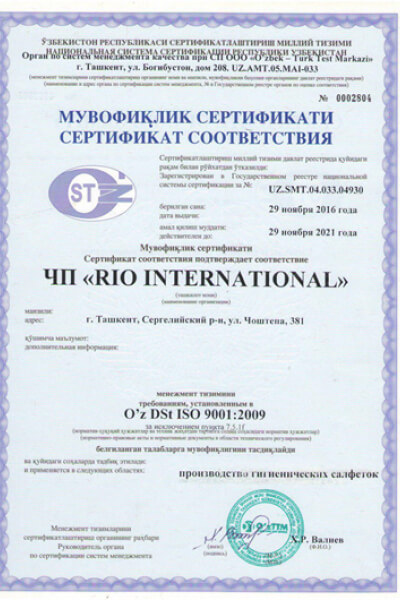 Наличие сертификата ISO 9001 подчеркивает важность выбранного нашей компанией курса на высокое качество оказываемых услуг и выпускаемой продукции, согласно мировым стандартам.